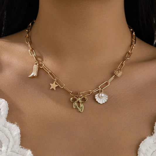 Un collier charm s’adapte à toutes les occasions. Pour un look décontracté, combinez un charm simple comme une étoile avec un t-shirt et un jean. En été, optez pour des charms en forme de soleil ou de coquillage portés sur une robe légère. Pour une soirée élégante, choisissez des charms en diamant ou sertis de rubis symbolisant la passion. En hiver, un collier avec un pendentif en forme de flocon de neige ou un motif naturel comme un sapin apporte une touche poétique.